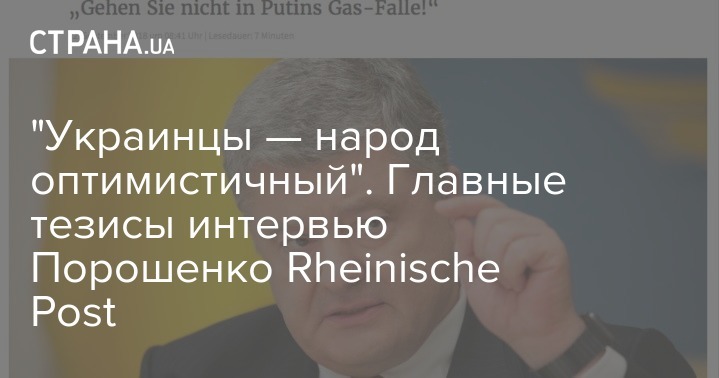 В заголовок интервью вынесена цитата Порошенко: "Не угодите в газовую ловушку Путина!"