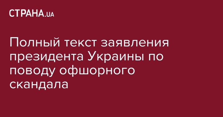 "Страна" приводит полный текст заявления президента Украины по поводу офшорного скандала.