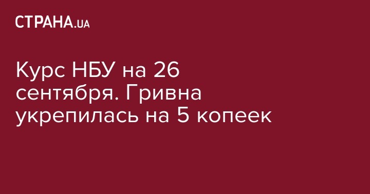 Курс НБУ на 26 сентября. Гривна укрепилась на 5 копеек