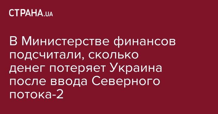 В Министерстве финансов Украины подсчитали, что прямые потери страны от реализации Россией проекта "Северный поток-2" составят до 3% ВВП. Об этом говорится в информации министерства, опубликованной на его сайте.