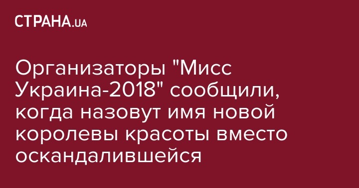 Организаторы "Мисс Украина-2018" сообщили, когда назовут имя новой королевы красоты вместо оскандалившейся