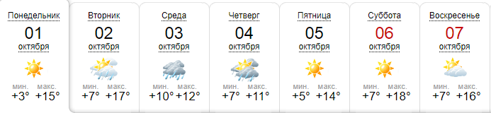 "Страна" собрала данные пяти ресурсов, чтобы составить прогноз погоды на неделю с 1 по 8 октября.