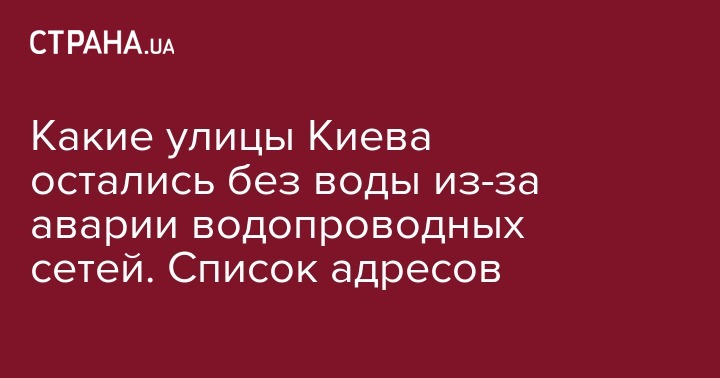 Какие улицы Киева остались без воды из-за аварии водопроводных сетей. Список адресов