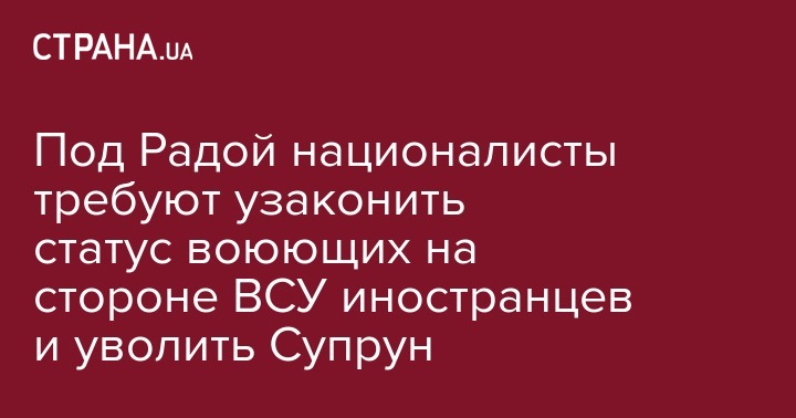 Во вторник, 2 октября, в Киеве активисты "Нацкорпуса" вышли на пикет Верховной Рады. Радикалы требуют, чтобы парламент рассмотрел вопрос иностранцев, которые воюют на Донбассе на украинской стороне и не имеют статуса участников боевых действий. Также националисты выступают за увольнение министра здравоохранения Ульяны Супрун и ее зама Александра Линчевского. Соответствующее постановление сегодня собираются рассмотреть в Раде.