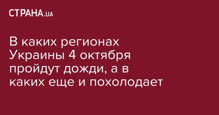 В Украину с четверга, 4 октября, придет атмосферный фронт с облачной погодой и периодическими дождями на севере и западе Украины. С синоптической карты исчезнет температура в +20. Об этом сообщает Укргидрометцентр.
