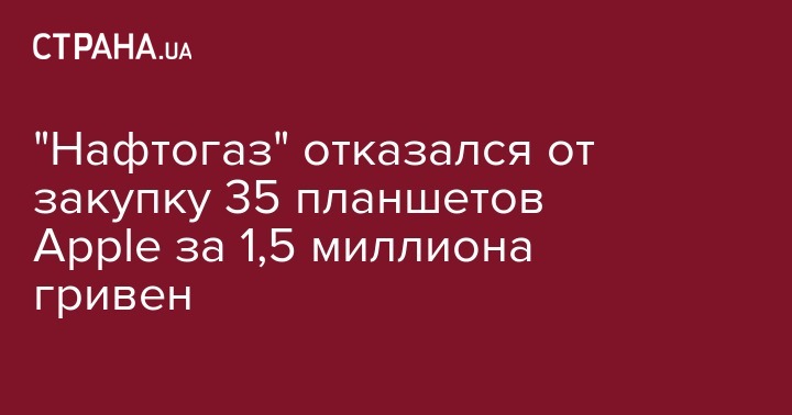 Национальная акционерная компания "Нафтогаз Украины" отменила результаты тендера на покупку 35 планшетных компьютеров марки Apple iPaD Pro стоимостью 1,432 миллионов гривен из-за отсутствия дальнейшей потребности в закупке этого товара. Об этом сообщают "Украинские новости".