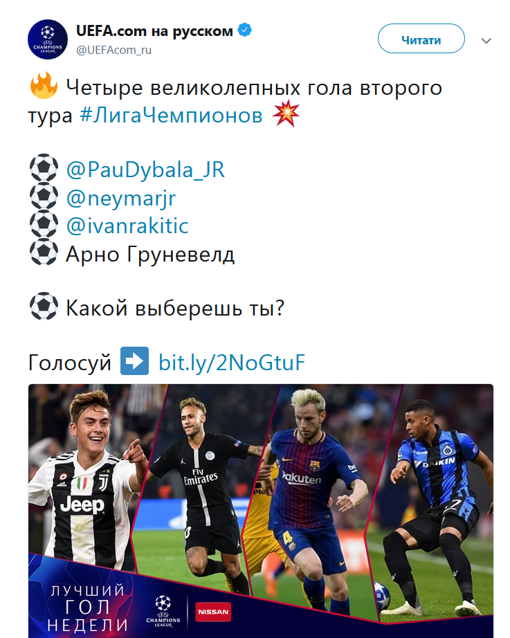 Официальный Twitter УЕФА призвал болельщиков выбрать лучшего из этой четверки.