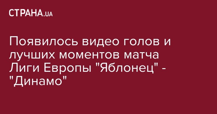 Появилось видео голов и лучших моментов матча Лиги Европы "Яблонец" - "Динамо"