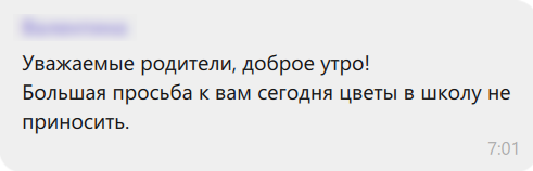 "Уважаемые родители, доброе утро! Большая просьба к вам сегодня цветы в школу не приносить", - такое сообщение пришло сегодня утром в Viber-чат одного из начальных классов школы в Печерском районе Киева.