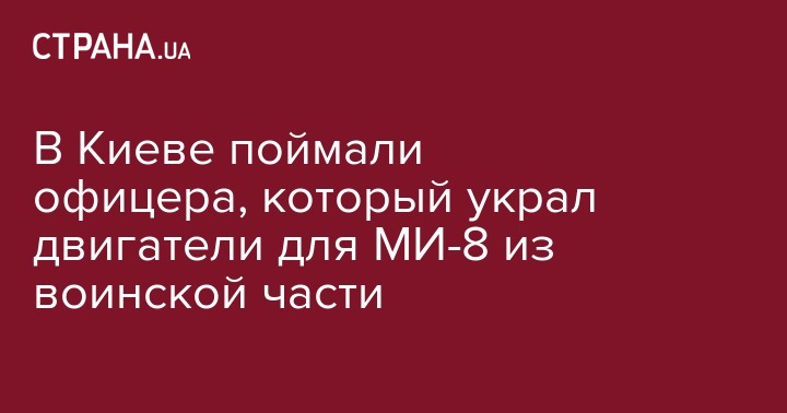 В Киеве был задержан офицер роты охраны, который выкрал из воинской части два двигателя для вертолета МИ-8, чтобы продать их за границу. Об этом пишет пресс-служба Военной прокуратуры Центрального региона Украины.