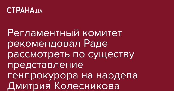 Сегодня, 8 октября, Комитет по вопросам регламента Верховной Рады принял решение рекомендовать парламенту рассмотреть по существу представление генпрокурора Юрия Луценко о привлечении к уголовной ответственности нардепа от Оппоблока Дмитрия Колесникова. Об этом пишет "УП".