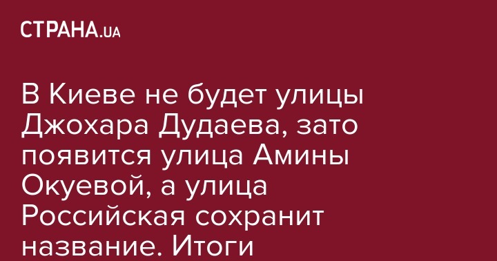 Не будет в Киеве и улицы Джохара Дудаева. Улица Искровская (названная в честь первой газеты большевиков "Искра") не будет переименована. Да проекту сказали 755 человек, а нет  - 870.