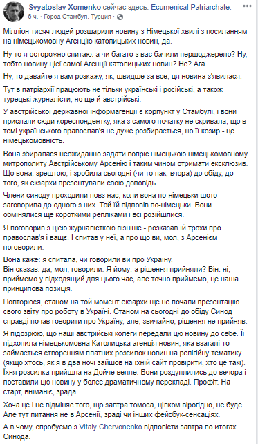 Повторюсь, по состоянию на тот момент экзархи еще не начали презентацию своего отчета о работе в Украине."