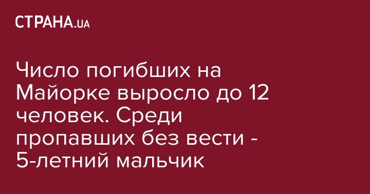 Число погибших от наводнения, вызванного проливными дождями, на испанском острове Майорка выросло до 12 человек, сообщает в четверг испанская газета La Razón. Накануне сообщалось о девяти погибших. Издание отмечает, что спасатели продолжают поиски пропавшего без вести 5-летнего мальчика.