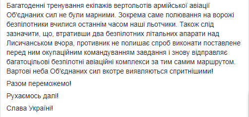 Сегодня, 13 октября, ВСУ заметили над Лисичанском беспилотник противника. Об этом сообщает пресс-центр ООС на странице в Facebook.