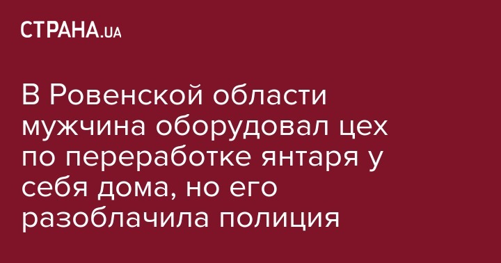 В пгт. Заречное Ровенской области местный житель оборудовал дома подпольный цех по нелегальной обработке янтаря, однако его разоблачили правоохранители. Об этом сообщает Отдел коммуникаций ГУ НП в Ровенской области