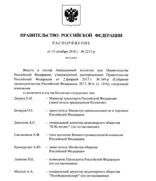 Также из состава коллегии исключили экс-главу ПАО "Ил" Сергея Вельможкина и генерального конструктора ПАО "Корпорация "Иркут" Олега Демченко.