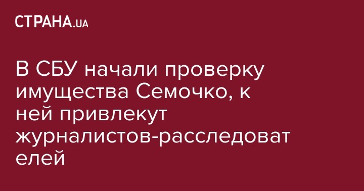 В то же время в СБУ напомнили, что проверка информации о состоянии и возможном незаконном обогащении Семочко проверяется НАБУ в рамках зарегистрированного ими уголовного производства по ч. 3 ст. 368-2 Уголовного кодекса Украины.