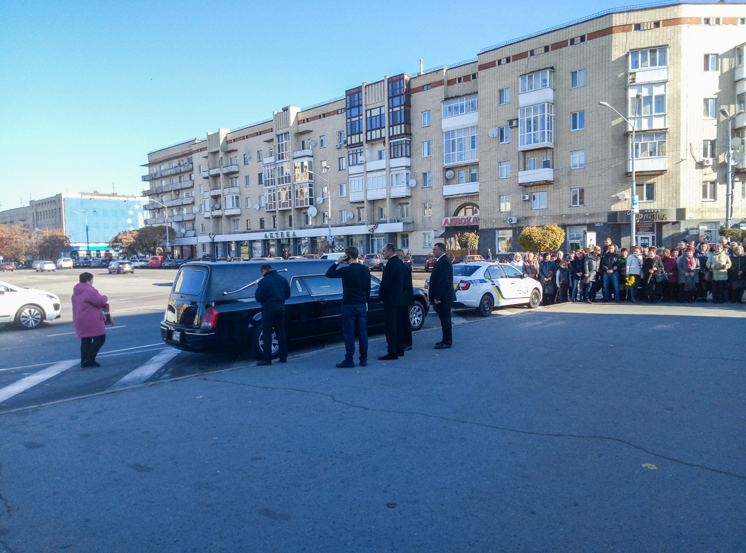 Церемония прощания началась в 10:30 в здании Житомирского академического музыкально-драматического театра имени Кочерги. Катафалк с телом актрисы прибыл на место немного заранее, его сопровождала полиция. Попрощаться с Мариной Поплавской собрались около 500 человек. Среди них есть и совсем молодые люди, и пенсионеры. Они принесли с собой цветы, некоторые из гостей церемонии плачут.