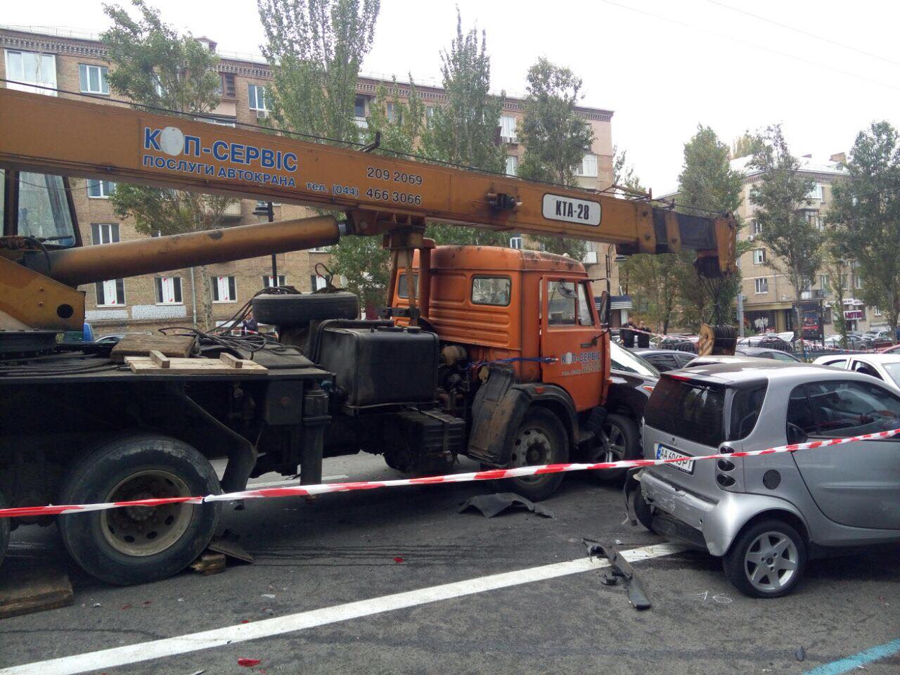 Напомним, в центре Киева, на бульваре Леси Украинки, 23 октября около 09:00 автокран с отказавшими тормозами протаранил 17 автомобилей.