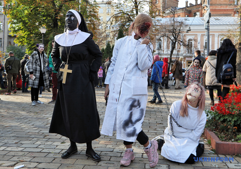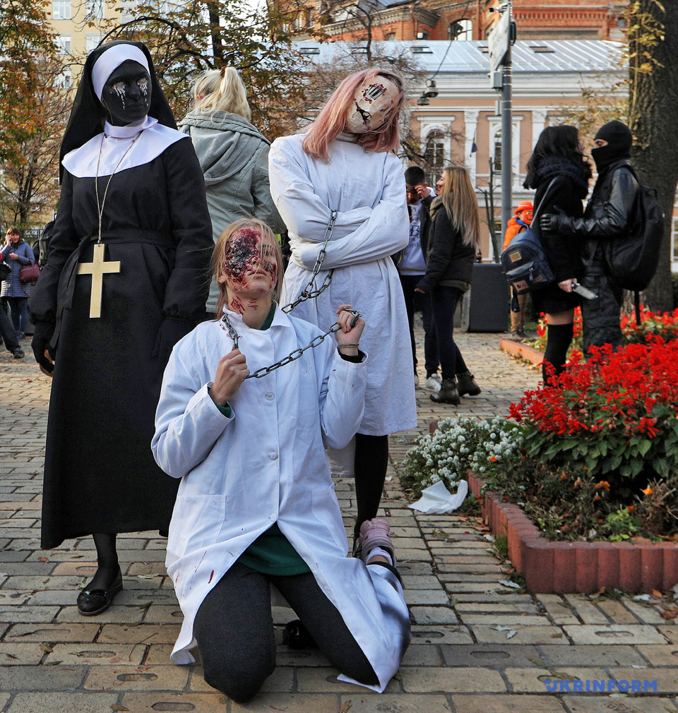 Сегодня, 27 октября, в Киеве прошел "парад зомби", приуроченный к празднику Хэллоуин. Об этом сообщает "Укринформ".