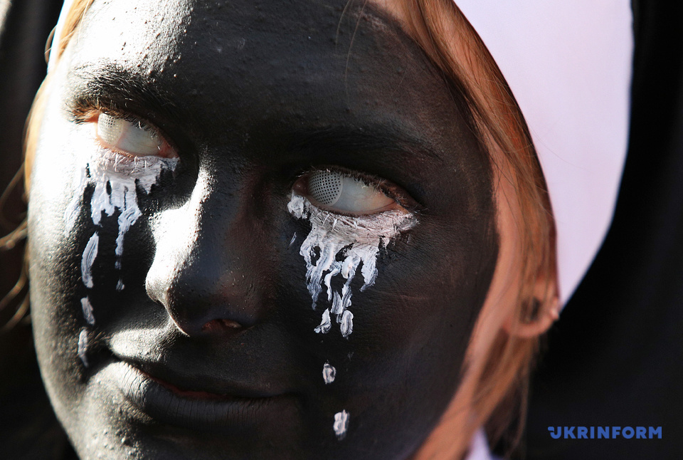 На акции собрались около 100 человек, загримированных в чертей и другую нечисть. Молодежь была одета также в костюмы ведьм и монашек. Участники акции прошли от Золотых ворот до Софийской площади, а затем до Майдана.