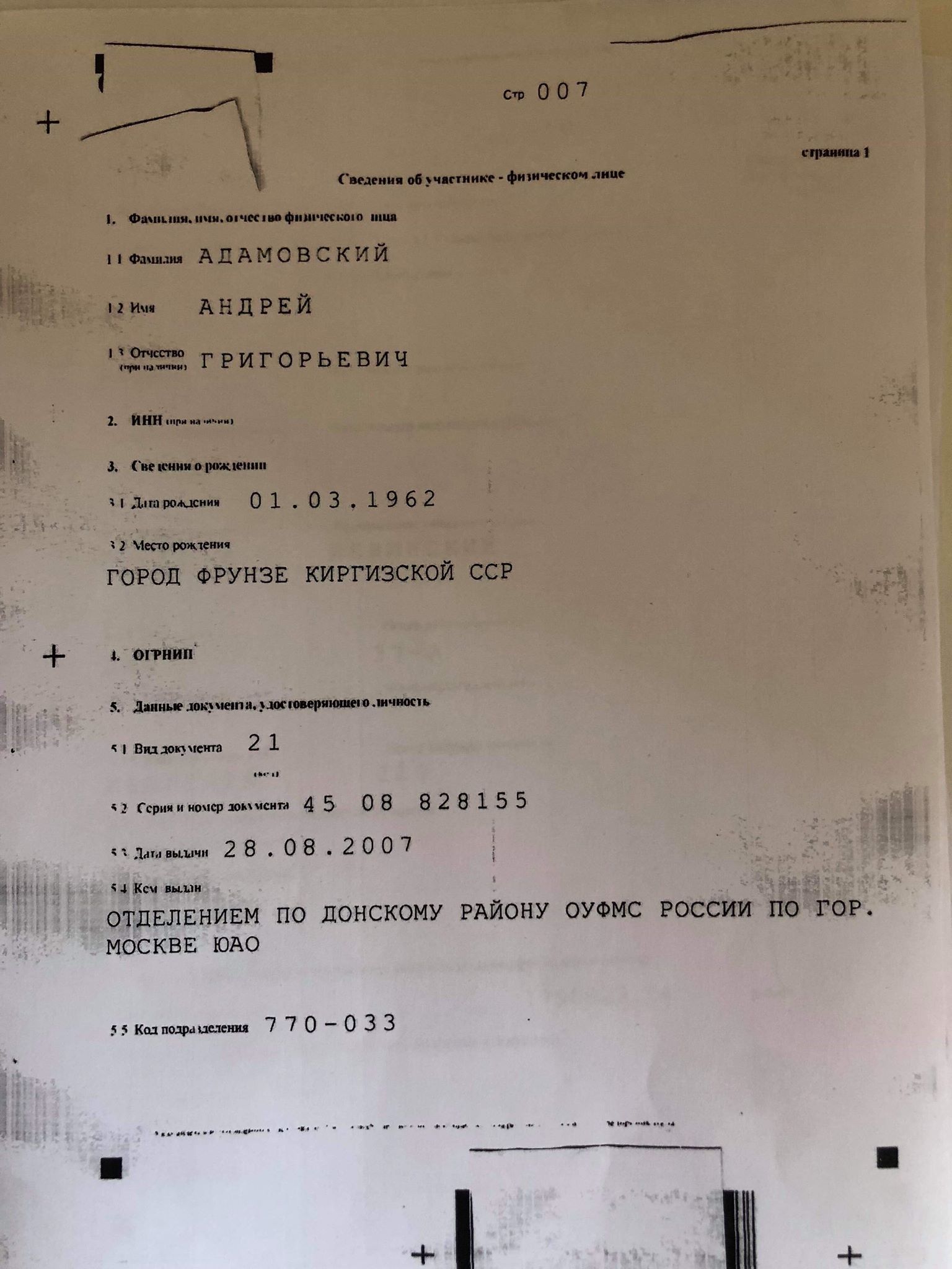 Паспорт выдан Адамовскому в Москве 11 лет назад - 28 августа 2007 года. Как видим, после аннексии Крыма бизнесмен не только сохранил этот документ, но и активно использует его для ведения бизнеса на неподконтрольной Украине территории.