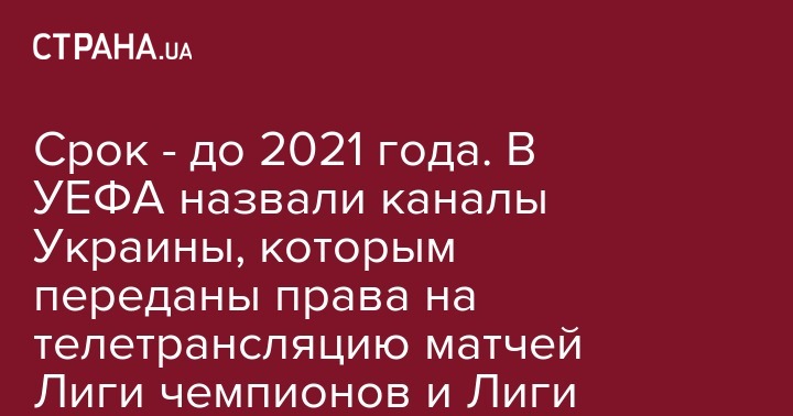 Два украинских телеканала "Футбол 1" и "Футбол 2", а также и компания "Воля" получили официальный статус и права трансляторов всех матчей Лиги чемпионов и Лиги Европы УЕФА до 2021 года. Таким образом, украинские болельщики смогут увидеть все поединки еврокубков сезонов 2018/2019, 2019/2020, 2020/2021.