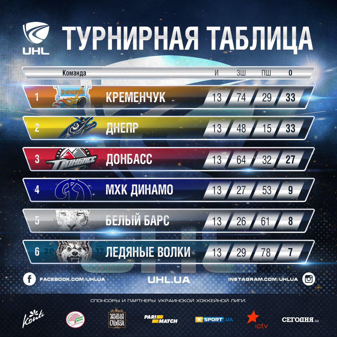 28 октября завершился тринадцатый тур Украинской хоккейной лиги, в рамках которого "Днепр" в Харькове уверенно обыграл МХК "Динамо", “Белый Барс" уступил "Донбассу", а "горожане" разгромили “Ледяных Волков”.