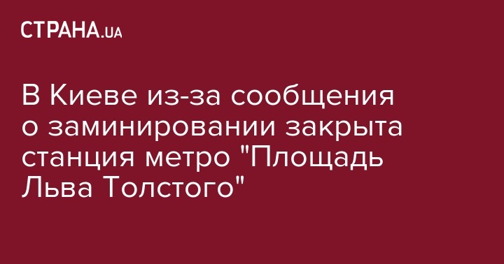 В Киеве из-за сообщения о заминировании закрыта станция метро "Площадь Льва Толстого"