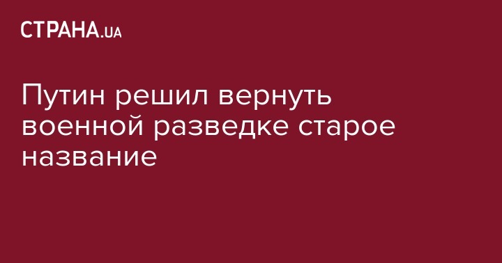 Агенство сообщает, что о желании возродить старое название сообщил президент РФ Владимир Путин. Он поздравлял сотрудников ведомства с наступающим Днем военного разведчика, а также 100-летием ГРУ, которое сейчас носит название Главное управление Генерального штаба Вооруженных сил.