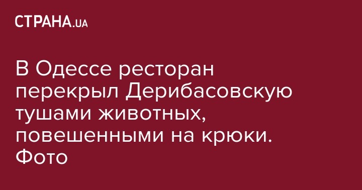В Одессе администрация ресторана "Стейк хаус" перекрыла проход по Дерибасовской тушами животных в честь юбилея. Здесь установили сцену и настил для празднования. Об этом сообщает активист Демьян Ганул на своей странице в Facebook.
