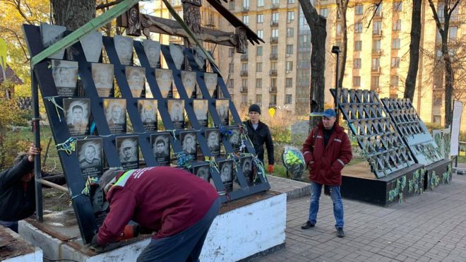 В центре Киева, 6 ноября, коммунальщики демонтируют мемориал Героям Небесной сотни. Об этом сообщает ВВС.
