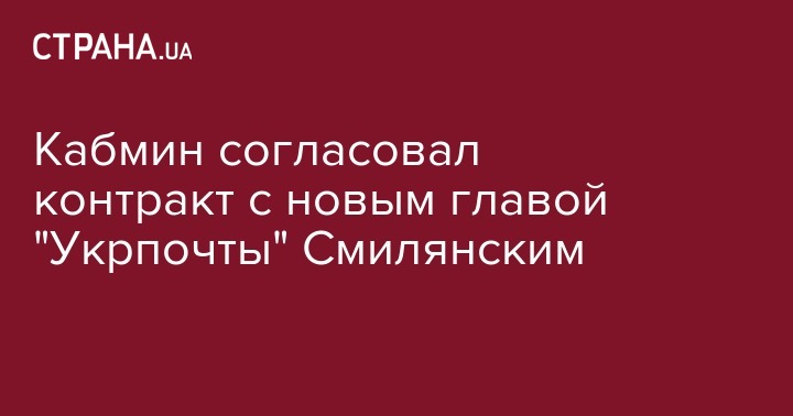 Кабинет министров согласовал контракт с новым руководителем "Укрпочты" Игорем Смилянским. Об этом сообщил министр инфраструктуры Владимир Омелян, передает Интерфакс-Украина.