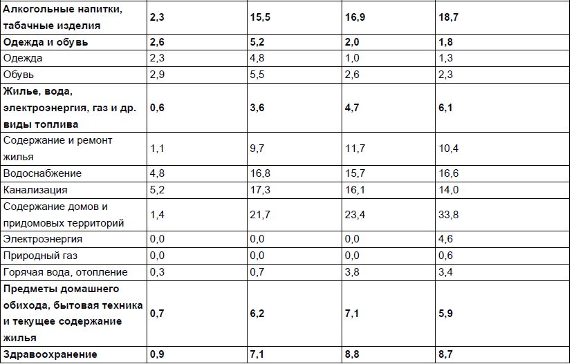 Рост цен (тарифов) на жилье, воду, электроэнергию, газ и другие виды топлива на 0,6% произошло главным образом за счет повышения тарифов на канализацию на 5,2%, водоснабжение - на 4,8%, содержание домов и придомовых территорий - на 1,4%.