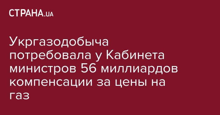 Представители Государственной газодобывающей компании "Укргаздобыча" обратились в Хозяйственный суд Киева с просьбой взыскать с Кабмина 56,797 млрд гривен в качестве компенсации за лишение возможности продавать природный газ по рыночным ценам в рамках возложенных правительством специальных обязательств.