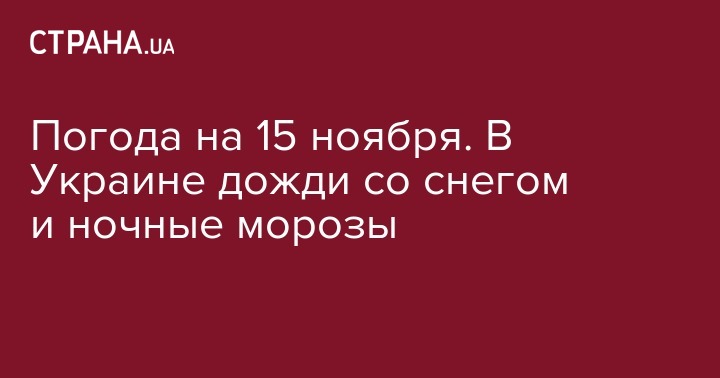 Сегодня, 15 ноября, Украину ждет холодная погода с морозами ночью, дождями и мокрым снегом днем, температура днем будет доходить до +7 градусов. Об этом сообщает Укргидромет на своем сайте.