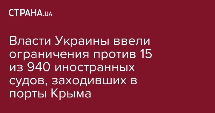 Власти Украины ввели ограничения против 15 из 940 иностранных судов, заходивших в порты Крыма