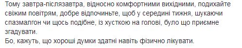 "Ноябрь немного обиделся за то, что его постоянно обзывают плохим, мрачным, депрессивным и всяким таким. Но природа порой умнее людей и вместо того, чтобы дуть губы и отвечать злой взаимностью, ноябрь сделал выводы", - пишет она, комментируя улучшение погоды на выходных. Она отмечает, что в большинстве областей Украины осадки маловероятны.