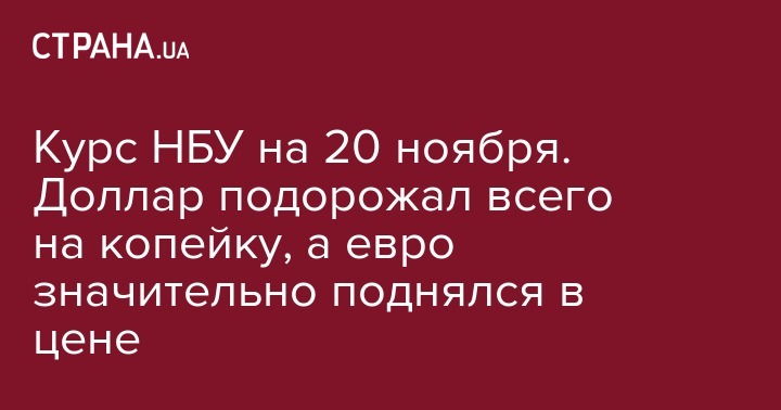 Так, 20 ноября, курс валют НБУ выглядит следующим образом: