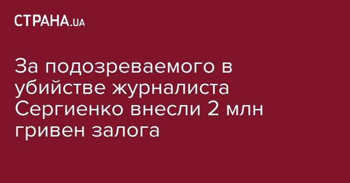 Ранее "Страна" сообщала, что суд в Черкассах отпустил под залог подозреваемых в жестоком убийстве журналиста. По решению суда, Мельнику, как организатору, назначен залог в 2 млн грн; подозреваемому исполнителю Горбенко - 800 тыс. грн. Мельник в ходе следственных действий заказчика не назвал. По делу о похищении и убийстве Сергиенко, кроме Мельника и Горбенко, фигурирует еще ряд подозреваемых, двое из которых находятся в розыске.