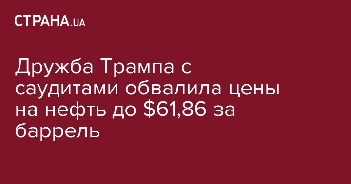 Дружба Трампа с саудитами обвалила цены на нефть до $61,86 за баррель
