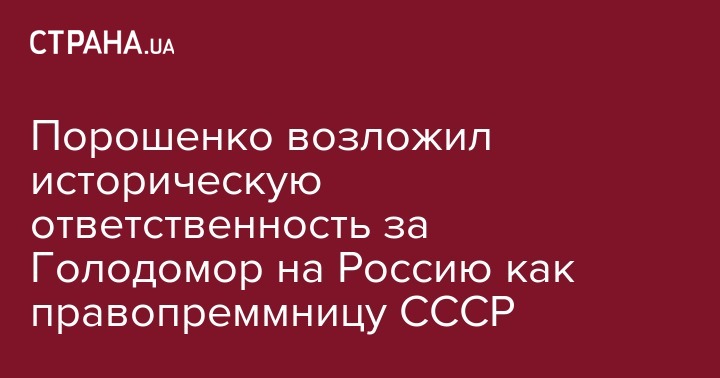 По мнению Петра Порошенко, Российская Федерация является провопреемницей СССР, поэтому она несет историческую ответственность за Голодомор 1932-1933 годов в Украине. Об этом пишет "Интерфакс".