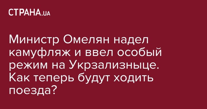 "Я даю отдельное поручение усилить охрану и оборону вокзалов, железнодорожных станций, аэропортов, портов и других объектов инфраструктуры. Также мы вводим особый режим работы железнодорожного транспорта. Он предусматривает обеспечение пропускной способности железнодорожной сети и соответствующего подвижного состава для нужд обороны в основных направлениях, определенных Генеральным штабом Вооруженных сил Украины. Также приоритетность при назначении поездов будет определяться необходимостью осуществления перевозок в условиях военного периода, по решениям военного командования", - заявил Владимир Омелян.
