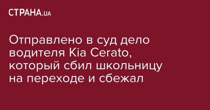 Прокуратура расследовала и направила в суд обвинительный акт в отношении 24-летнего водителя, который совершил наезд на 12-летнюю школьницу на пешеходном переходе и скрылся с места происшествия. Об этом сообщает пресс-служба прокуратуры Киева.