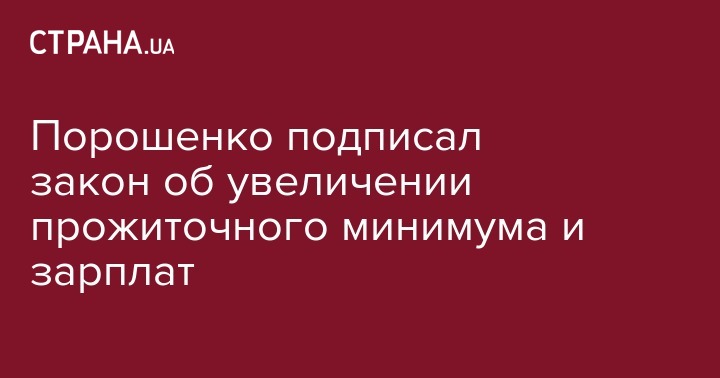 С 1 декабря прожиточный минимум в Украине повышается до 1544 грн., а минимальная зарплата - до 1600 грн. Соответствующий закон подписал президент Петр Порошенко. Об этом сообщает пресс-служба главы государства.