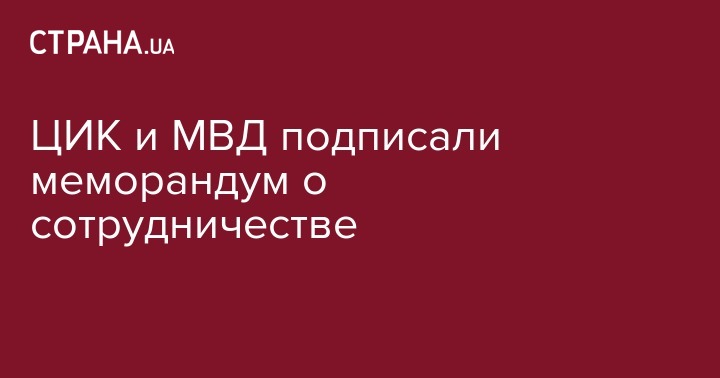 Сегодня, 5 декабря, председатель Центральной избирательной комиссии Татьяна Слипачук и глава МВД Арсен Аваков подписали Меморандум о сотрудничестве между ЦИК и МВД. В пресс-релизе, поступившем в редакцию "Страны", говорится, что такой документ заключен впервые.