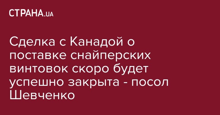 "После решения Канады внести Украину в Контрольный перечень стран, в которые разрешены поставки автоматического оружия несколько канадских компаний воспользовались новыми возможностями в Украине. Как уже стало известно, мы приближаемся к закрытию сделки на поставку снайперских винтовок", - сказал Шевченко.