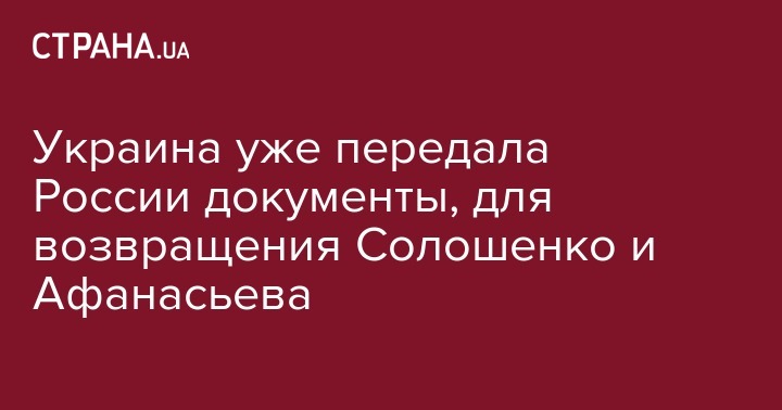 Украина уже передала России документы, которые необходимы для того, чтоб вернуть на родину украинцев Юрия Солошенко и Геннадия Афанасьева. Об этом сообщил министр юстиции Павел Петренко, передает "Интерфакс Украина".
