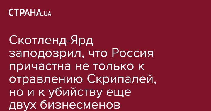 Скотленд-Ярд заподозрил, что Россия причастна не только к отравлению Скрипалей, но и к убийству еще двух бизнесменов